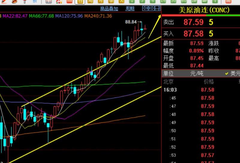 原油方面:周线级别连阳发展,中期单边上涨多头不变;日线级别处于短期均线之上强势整理,多头排列同样不变,整理之后再度强拉;依托日线5均线86.8继续强势看涨为主,极限是黄色通道上轨支撑点,也是强支撑买盘85一线,阻力关注周线上轨承压92-93一线,也是后期拐点波段反手做空区域;