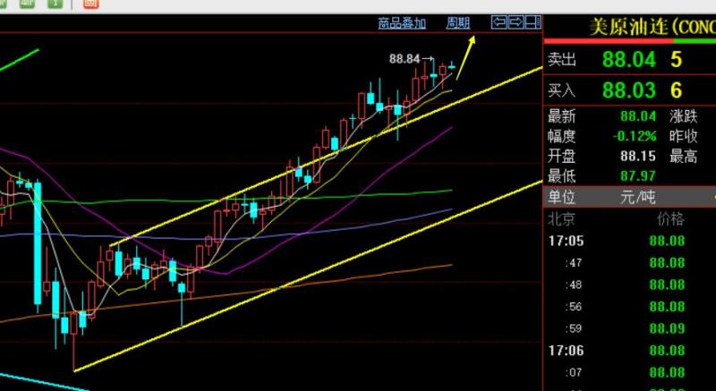 原油方面:日线维持短期均线上运行,就是属于强势单边多头,只不过暂时维持于前期通道上轨之上高位横盘,但也是强势整理对待,关键支撑则是86.2和85,前者是这几日横盘支撑点,后者是通道上轨回踩支撑点,守住这两个位置,依旧看好逐步强势测试周线通道压力92-93,也是后期的拐点; 这几日可以按照时间循环原则,隔夜拉升,白天高位横盘压制不上,则会先跌一波,美盘再企稳拉升破高,因此88.3下先尝试短空,87上则反手低多;