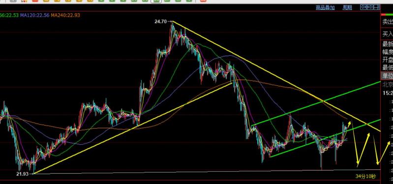 白银方面,从日线级别上,比黄金反弹弱些,还在测试10均线阻力,而黄金有所突破再测试中轨,不过从形态上,22-21.9存在一定买盘支撑,也是前期通道的回踩点以及大周期的分割支撑点;从如图小时线级别看,当前有所突破绿色通道下轨反压点,不过黄色趋势阻力应该存在打压,以及年均线也有压力,集中23-22.9,此位置下高空试探;短期22.7支撑,一旦大阴有效失守,则又容易往22-22.3逢低区域反复试探;