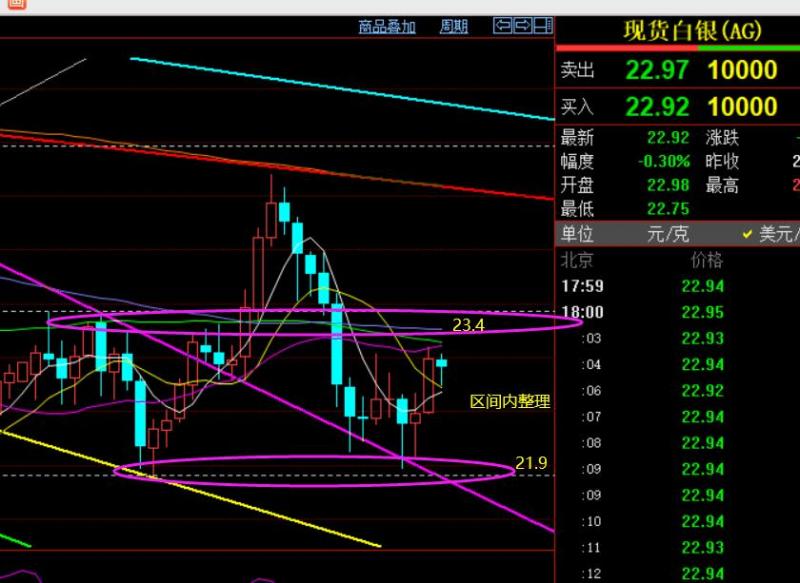 第二,白银方面,昨日指出23下短线看跌压制,它还算符合,并未突破23走高太多,今日回落一波22.8,先建议走人,主要是因为隔夜毕竟是上涨一波,今日下探后有可能还会反复试探23一线;