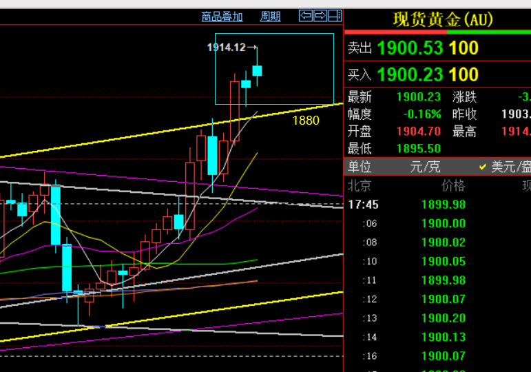 操作上:1920下方保持波段看跌思路,早间1910空,10美金及上减仓后再看,当前短线关注1906下承压,支撑1890-1886以及1880一线关注下;