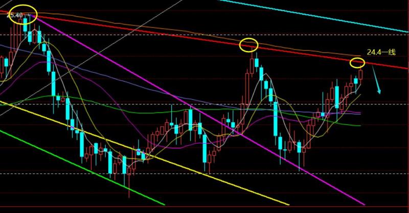 白银方面,一直强调的日线通道阻力已经逼近,24.4下可以开始分批轻仓尝试波段空,看回调修正,短期支撑23.7,破位关注23.3-23;