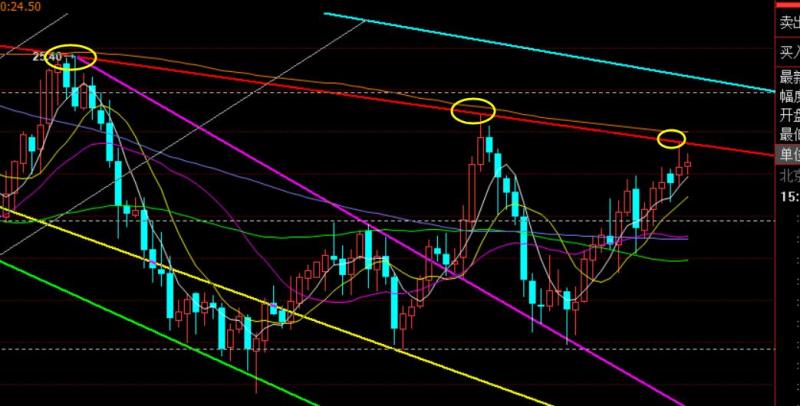 白银方面,日线已经触及通道上轨压力24.4下,收报一根长上影类似射击之星形态,则今日先回补影线部分,待承压还要计划继续压制布空,站上昨日高点上则可以回踩调仓;短期阻力关注24.35下,支撑23.95和23.65;