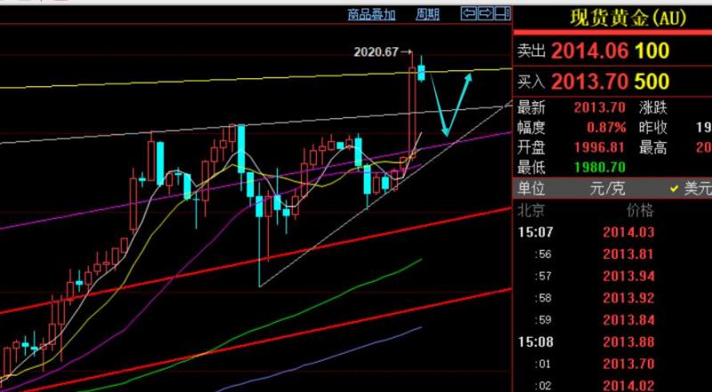 第一,黄金月线级别,代表长期方向,macd即将零轴上形成金叉,处于短期均线之上连阳强攻,长线则一直保持多头趋势不变,并且存在试探历史新高2075的可能;不过,有一点要格外留意,当价格加速冲破2075后,则容易快速回吐涨幅;三个原因,一个是价格已经远离短期均线,存在回补需求;另一个是,当破2075或靠近时,对应macd会形成顶背驰状态而压制;第三个是,若连续大阳拔起,就存在多头的加速可能,从而下月会导致压制高位整理或下探修正;就当前形态而言,没有见顶信号,保持多头趋势即可;