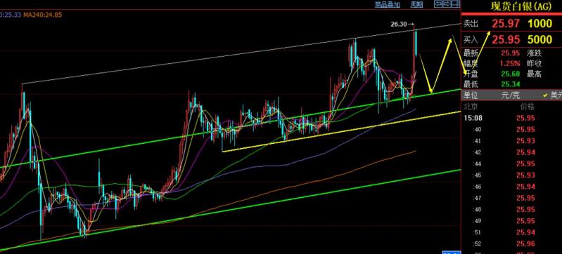 白银方面,月线长期也保持看涨,目标继续等待35.2关口;周线已经站稳66日均线,也展开多头上攻; 日线短期均线只要处于10日上方,也是逼空拉升,通道上轨25上已经站上,此位置上回测都是先继续做多看涨,阻力目标突破26,可以逐步试探26.45和26.8; 短线25.5上维持看涨;