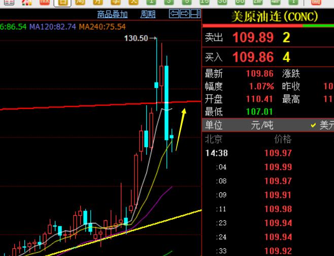 原油方面,金银近期的方向和原油基本是同步的,瞬间出现大幅拉升或下跌都基本一致,受制于市场的避险情绪变化;同样,日线大阴,只是它的力度过于较猛,半夜增产的消息双重打压导致跌幅过大,直接打到了本轮90-130涨幅的618分割位置105一线,还刺破将近200点才企稳;周线连阳后首次出阴,日线处于10均线上运行,整体也是维持偏强多头格局不变,暂时不言顶,只不过跌幅过大,高位震荡几日难免;关键强支撑关注105一线,其次107一线是小时线支撑,阻力113.5附近,处于小时线中轨压力,要突破站上它,才能进一步测试117、120的概率;当前价格横盘中,建议107上逢低看反弹尝试;