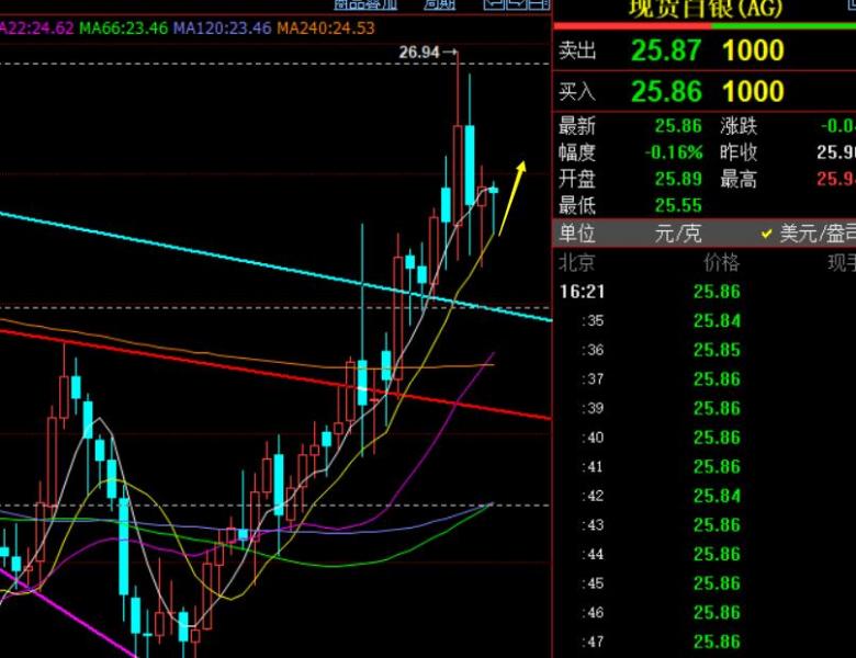 第二,白银方面,文章和视频中强调25.4一线位置的重要性,触及波段多一次,昨晚拉升至26高度,力度暂时不大,可持有观察;