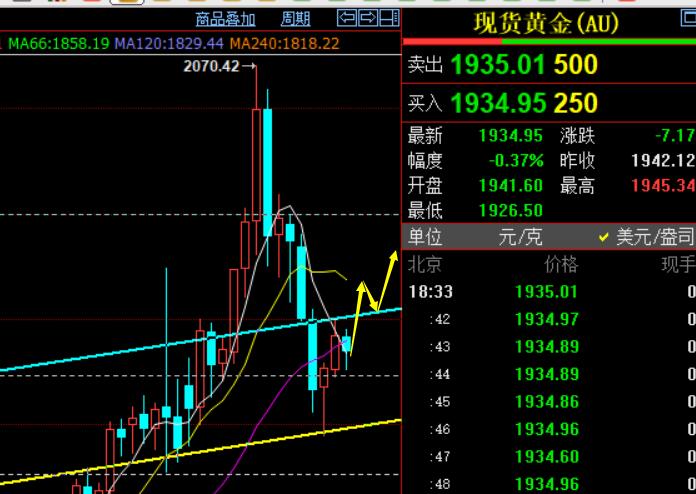 操作上:黄金1922触及仍短多,目标1935-38;或者突破1940后,回踩择机跟多,看1950上方; 1970下可以短空试探下,这里又会面临一定压制调整;