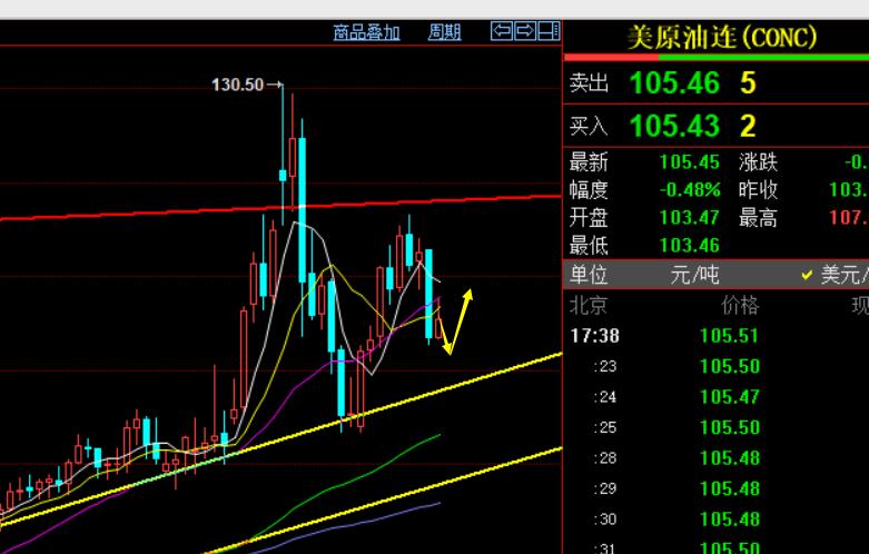 原油方面,昨日同样收大阴,凌晨也是和黄金一样,连跌弱势破底,但不同的是,今日亚欧盘并未压制,而是持续反弹,并突破618分割阻力106.3,触及107.7后才出现压制回落,这就是经常提及的原油由于波幅过大,容易产生惯性,而遇到关键支撑或阻力容易刹不住车,则会造成刺破损又抵达盈利的局面出现,总体而言就是短期方向可以大致清楚,但止损点不好预判,带的大的话心理压力也大,带的小的话容易刺破;不过,一旦不打损,把握住,也容易抓至少100点以上,两三百点也比较快;前期96.3中期波段多单持仓,于昨日109-110已通知学员全部出局收割;接下来或考虑102-101区域计划再次波段多,此位置也是回落618分割支撑;今日短线而言,当前小时线承压信号出现,则107.7为压力防守,反弹要再计划空一次,看102-101得失,出现背驰企稳信号则反手低多测试;
