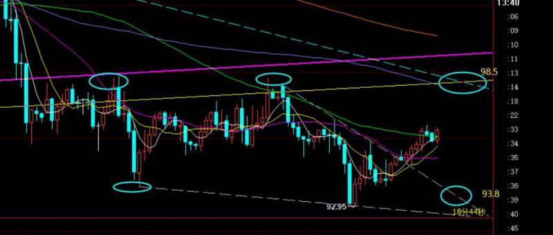 原油方面,昨日再次下探,失守上周四十字K低点93.8,但也是一种诱空刺破,并未延续走弱,当前又反弹回归96上,虽日线压制短期均线表现弱势,处于通道上轨下,但短周期macd都处于一定底背驰状态支撑它反弹,并未极弱走法;这种底部一直持续整理酝酿,随时可能出现拐点而转多拉升,这几日也一直在等待中期波段买入的时机,也即是91一线位置; 短线而言,突破凌晨96压力点,要下去91概率又不大,而卡在高低点之间去布局单子,也担心震荡反复而处于被动;因此,接下来要耐心等出现一波看似猛的下跌企稳去敢于布局低多,参考支撑关注93.8一线;或者98.5-99下震荡上轨阻力承压短空试探,若突破站上此处压力,意味着底部酝酿完毕,展开反攻上行,届时则需跟进多单;