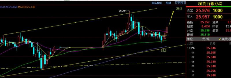第二,白银方面,日内亚欧盘也是震荡逼空上涨,终于到位26及上方,上周一直坚持看的目标阻力点,则上周四给出的25.3逢低多,短线也就顺利收割或减持,底仓24相对好的低位,可以继续尝试波段持仓,因为这轮拉升预计比超出原先的高度;