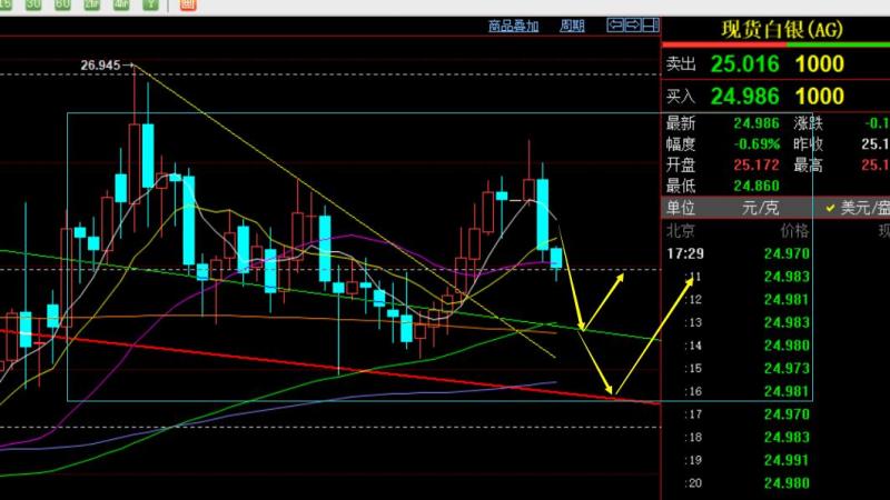 第二,白银方面,昨日提及25.6一线是作为通道下轨支撑防守,一旦失守此处,也就破坏上涨通道,多单就得调仓出局;