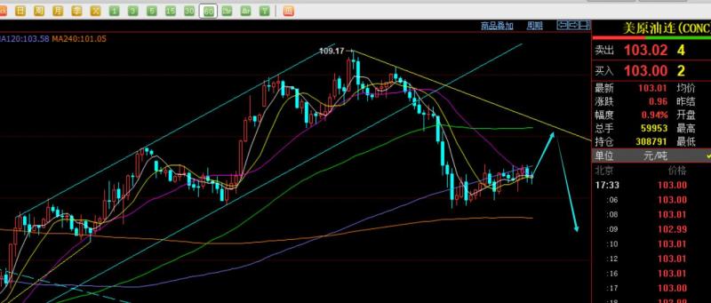 原油方面,昨日同样是大阴压制,结束上周以来的上涨通道,短期承压,今日反弹关注105.3下做空,支撑关注101和99.1逢低,属于上周涨幅回调50和618分割位置;日线级别来看,当前还在10均线上,也在前期通道上轨之上,还不是很弱,预计回调后企稳还会拉升;后市关注多头防守支撑明确就在93一线双底,只要守住此位置,整体震荡氏下滑局面会被终结;月线级别,长期当前还是维持多头中,均线多头排列;今日开始06合约报价;