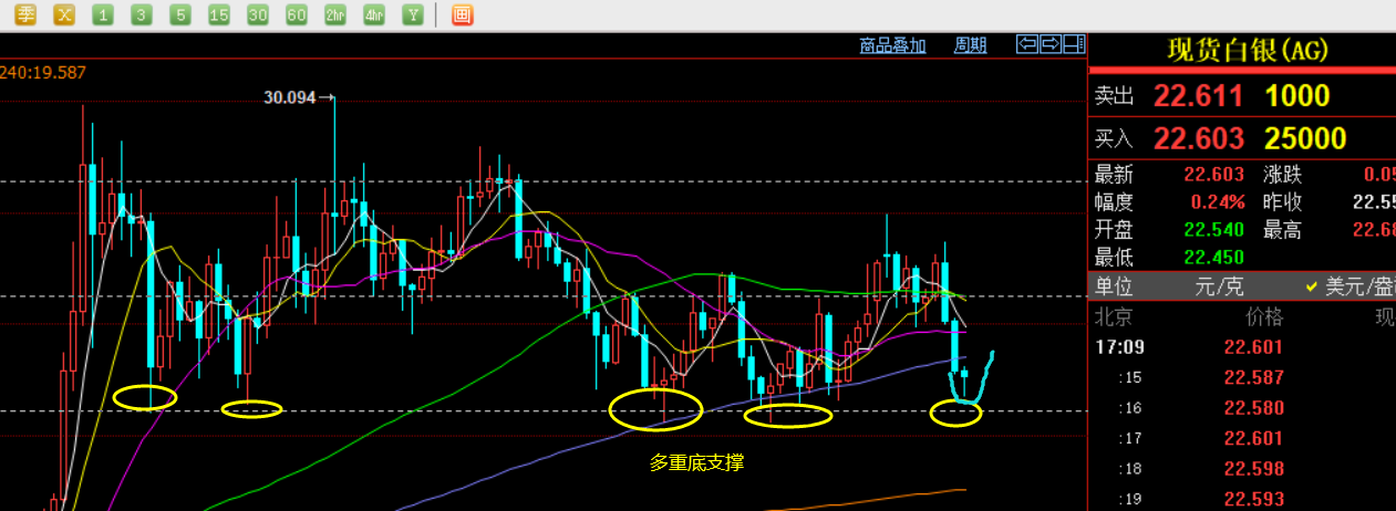 周线级别,价格可能要再一次试探前期多重底支撑22-21.6区域,这里的买盘很大,逢低仍坚守波段持仓多,或进一步加仓多看后期的拉升,限制于银行无杠杆产品,针对此类产品,最重要的是仓位管理,并非价格,一步步的规划,分批参与即可;