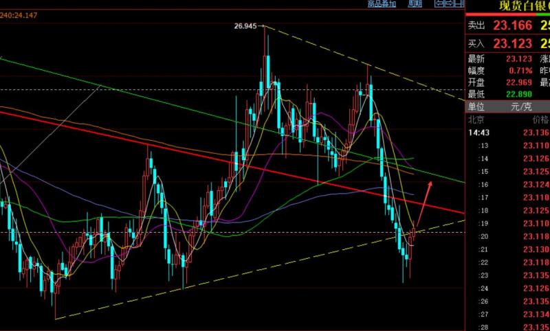 第二,白银方面,前期走的虽比黄金弱很多,23一线三角整理下轨也被破位,最低试探22.2一线,几乎逼近周线多重底21.6逢低上,但强调加息只要落地,白银也会快速反抽一波,拉低仍继续买入即可,今日很快抵达23上,可继续持有;