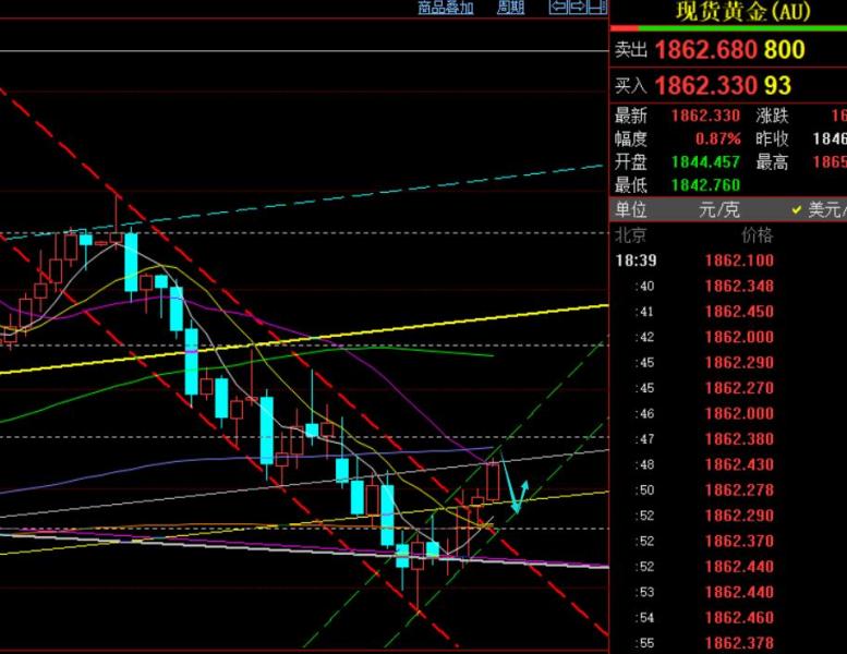 第一,黄金方面,上周四隔夜迎来一波持续拉升,作为第二日先回测则需先多,由于还处于底部刚反弹阶段,作为震荡偏多走法,以回测50分割,极限618分割支撑来布局跟多,因此做多是建议1828上逢低参与;而白盘一直前期下降通道的上轨之上运行,短期比预期偏强,不过整个欧盘一直未突破隔夜高点走延续拉升,而二次压制1849有所回测,因此提示可先布局高空,下跌一波后再择机低多跟随,盘中给出1845下空,抵达1836止盈,最低只给到1832,而这里恰好又是测试了前期下跌通道被上破之后的回踩确认点;