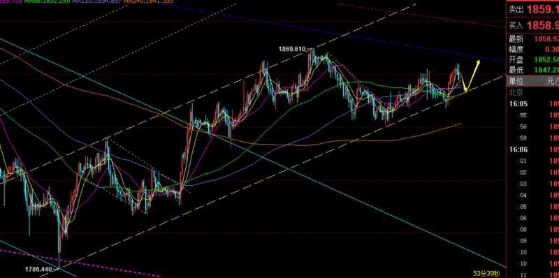 操作上:1854-55支撑上继续跟多,看1867-1870得失,站稳则后面逐步看1875、1885、1892再压制反手高空;