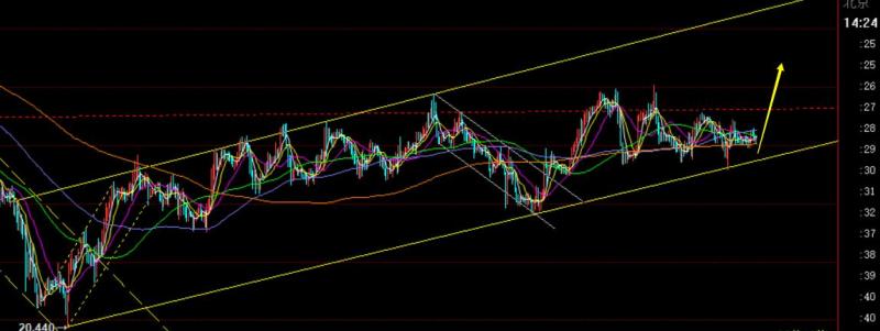 第二,白银方面,昨日文章指出宽幅上行震荡下轨支撑上移21.8,触及做多看反弹,刚好踩到最低点入场;