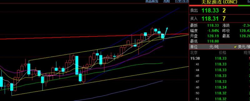 小时线级别上,今日亚盘多次承压119.2阻力,支撑118,看此区间运行;较为保守的,可以等119.2突破上攻一波后,再回踩119上逢低多,或者等117强支撑触及低多;119.2若突破站上后,下一个关键压力是121一线凌晨高点,决定能否冲破123前高的一道坎;