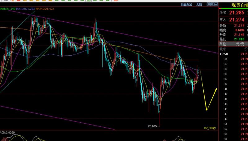 第二,白银方面:昨日提出21.6下看压制回落,支撑21一线到位,空间运行并不大,比黄金稍抗跌;
