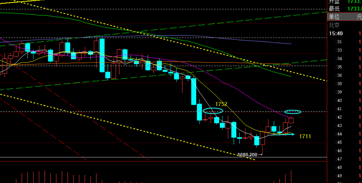黄金方面:短期均线支撑住了,加息落地后迎来一波反抽,可惜的是加息前,价格并未处于日内相对低位,给不到1707-1700预期做多点,反而处于相对高位1720上再续涨;今日关注1752下压制,它是前期大跌之后的开跌口,也是分割压力,此处若能突破站上,则可以逐步试探1780一线顶底压力,作为第三波修正幅度100美金来讲,1780附近或极限1800下也基本是终结处,整体上短趋势仍处于空头中,反弹是作为修正对待; 另外,1752下若压制不上,则还会围绕1711-1752之间做横盘运行,若失守1711,则又有概率转弱压制,试探1700、1690;