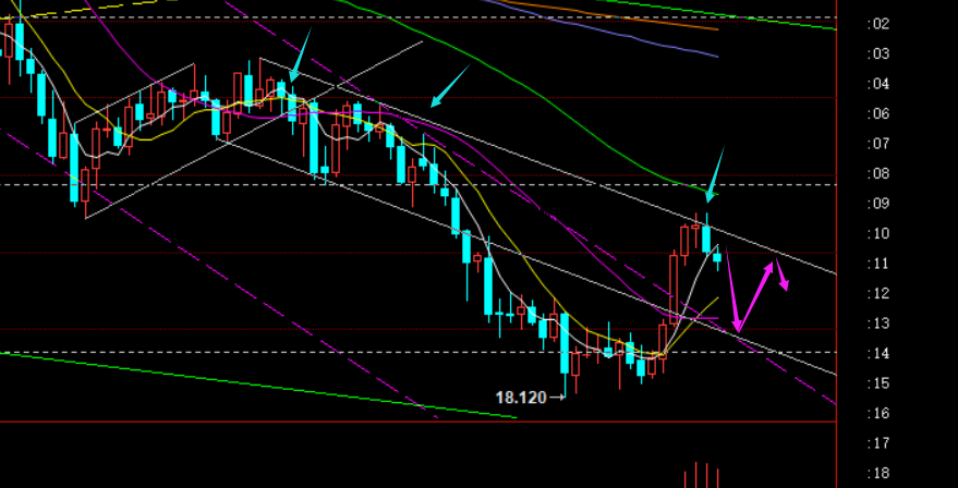 第三,黄金小时线级别:隔夜连跌破位下行,且凌晨后处于继续下穿,今日早盘先拉升,则午后或欧盘要跟空一次;首先选择的入场点则是50分割阻力,也是小时线中轨处1770一线,其次是1775(618分割阻力),极限是1780下(通道反压处),目标支撑则关注1753-1750几处通道支撑点,也算是前期逼空某一处的起涨点;另外,当价格刺破1753后,预计macd会步入底背弛状态,容易探底拉升,届时不宜再去追空,而是等待低多,接下来预判的就是区间内震荡为主;