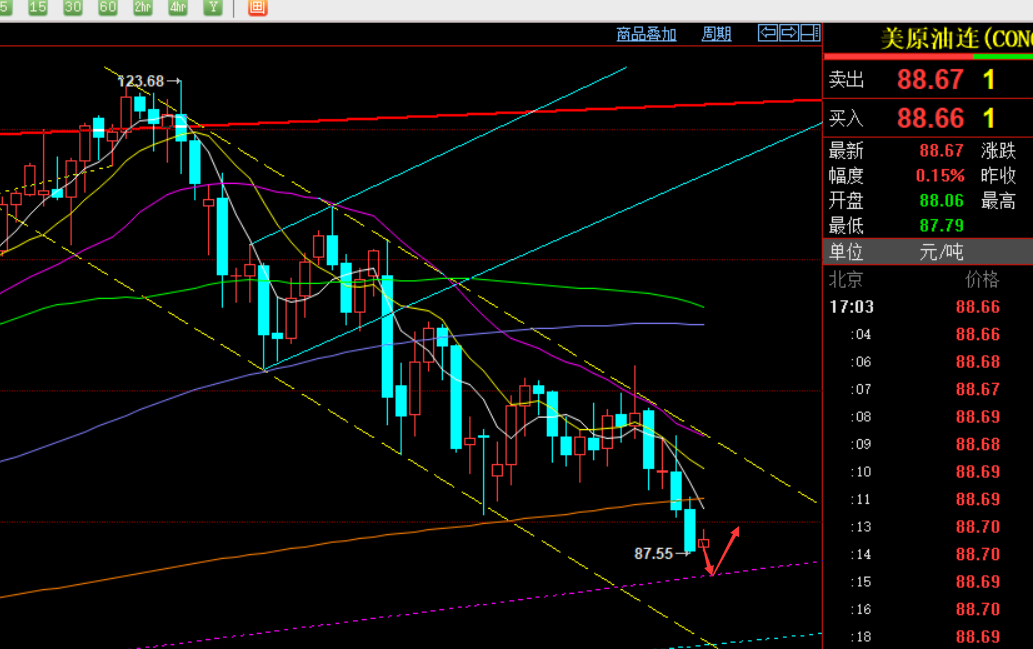 短线方面,由于隔夜持续走弱,今日先反弹仍先弱势空下去,382分割阻力在89.25,此位置下压制先看下行,支撑88-87.5和86;