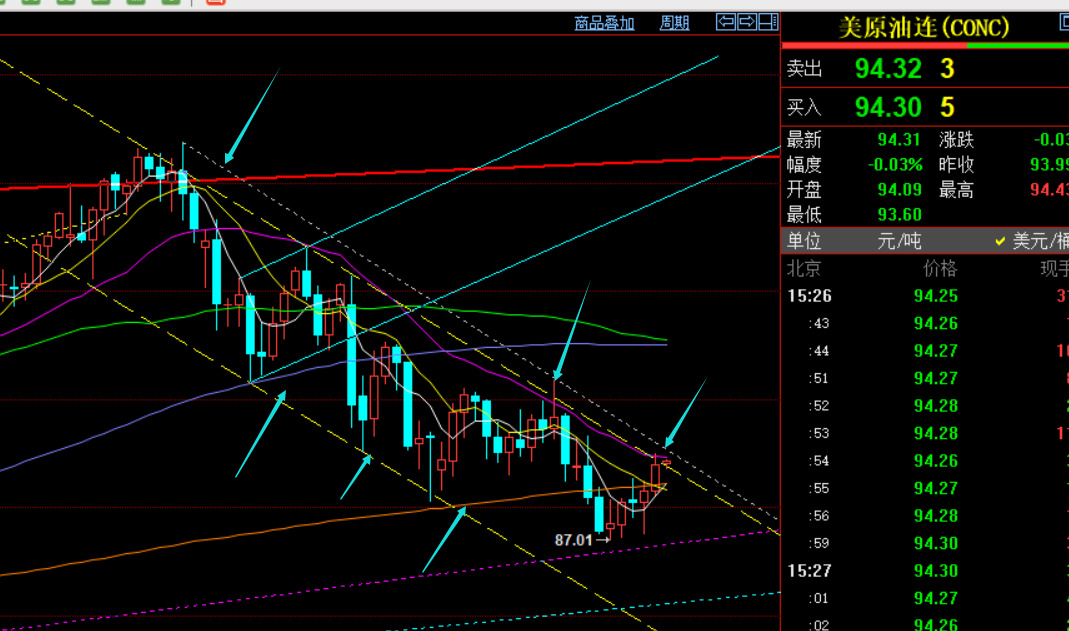 原油操作思路上: 95.5下高空,看93.3和91.4;