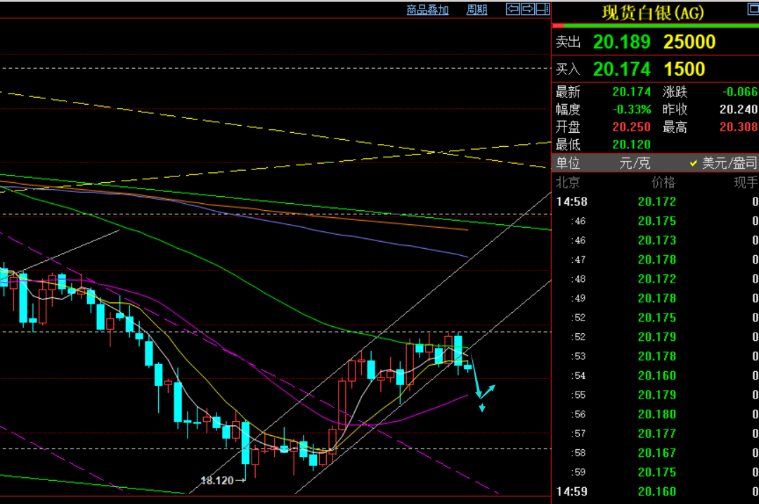 第二,白银方面:昨日压制20.85提出的阻力点,终究试探确认了20关口;