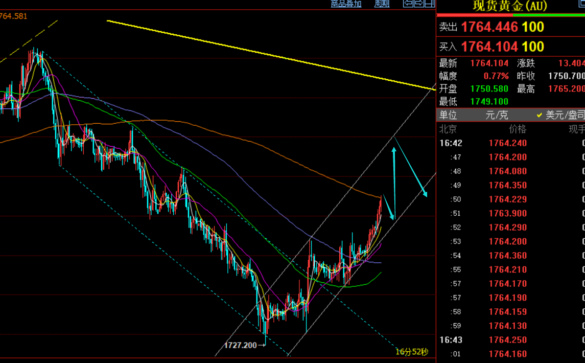 黄金操作思路上:1754-55支撑上继续维持看反弹,阻力1765-67,站上看1773-1777; 1780下看反手压制;
