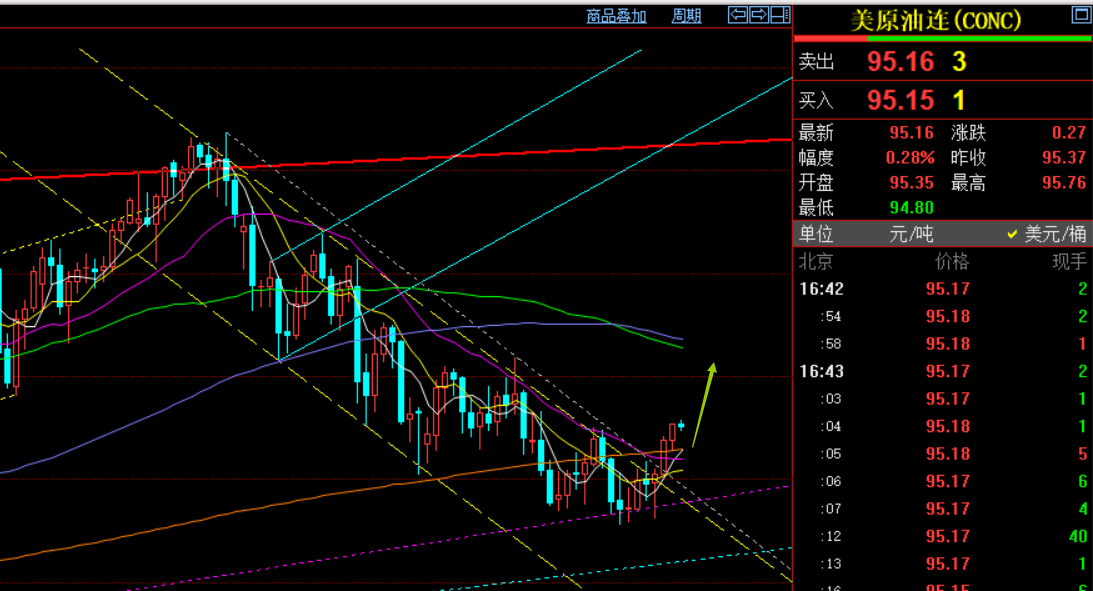 原油操作思路上:短线94支撑逢低看涨,波段92.5上逢低看涨,短期阻力96.3、97.2、100,波段阻力105和109;