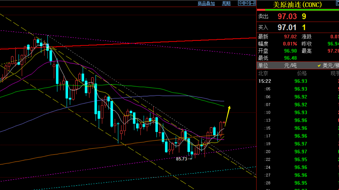 原油操作思路上:94.7上保持继续看涨,先进攻100-101;