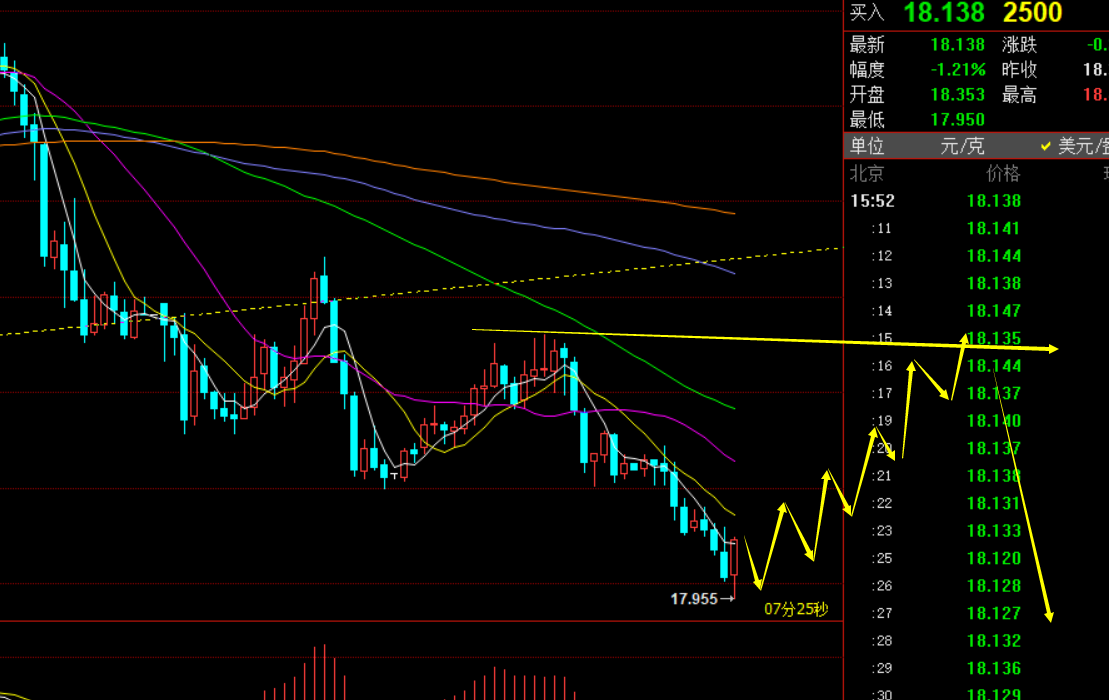 第二,白银方面:昨日提出18.74下看压制,支撑目标18.3、18都全部试探到位;