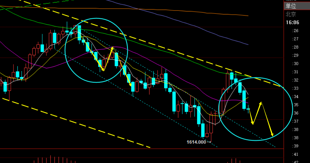 第二,黄金4小时级别:昨日延续5均线一路连阴,这是极弱的表现,看着很有规律,但就是不敢直接追空,因为早盘高位没有空进去,后面一路阴跌,也就更不会追了,这是人性的一面;反而,市场上不断试探做多的会不少,这往往是阴跌行情带来的诱惑;当前还是继续关注10均线1676下,这里未突破站上,弱势行情不变,会继续延续破底; 突破站上10日了,才能从弱势转为震荡或修正;