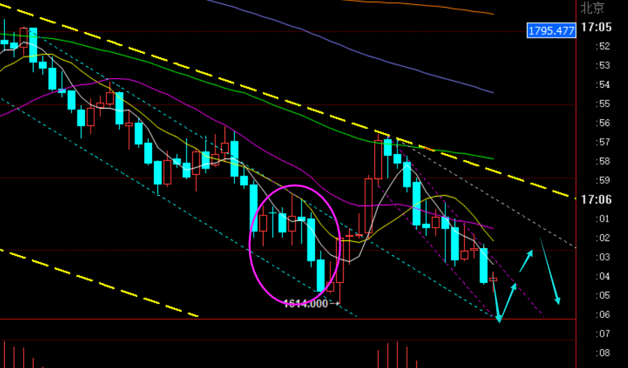第一,黄金方面:昨日早盘提示价格已经再次触及短期下降通道上轨位置1652一线,则直接继续空,欧盘如期下跌走低,美盘反弹二次看下行,最低今日抵达了1621一线,而1622-20正是前几天给出的目标位;然而随着时间的推移,这个价格也难以阻挡空头的发力;