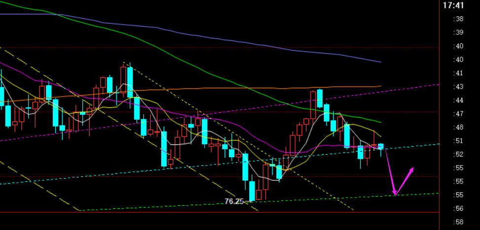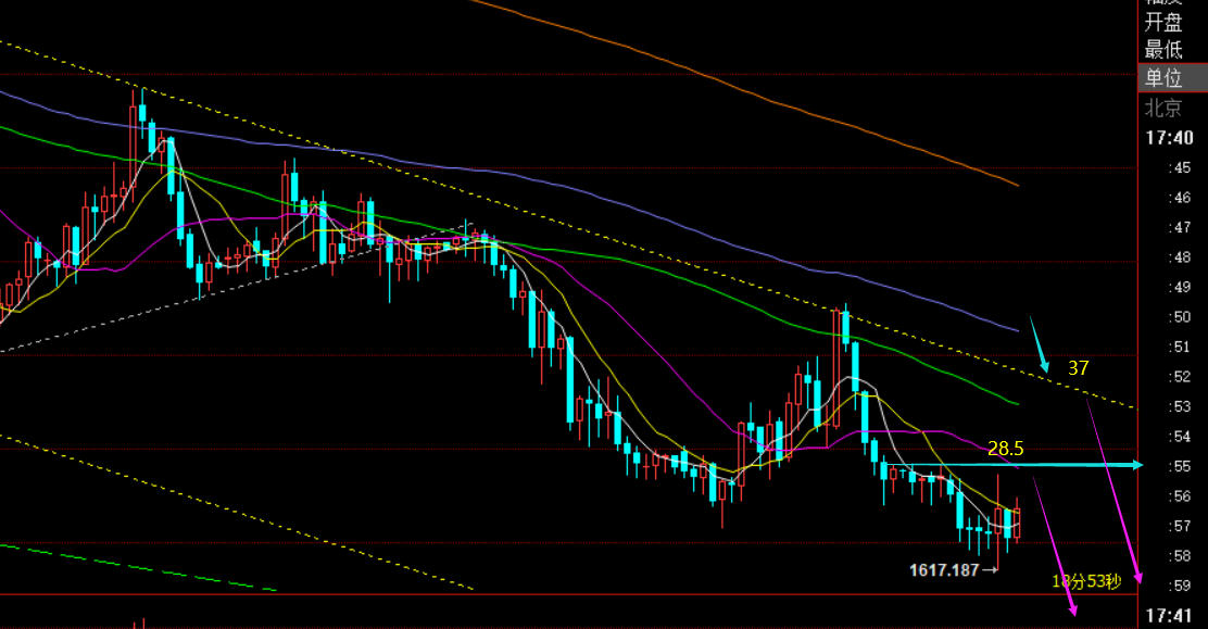 第三,黄金小时线级别:隔夜又是冲高走跌,今日早盘走了一波续跌,欧盘虽反弹,但当前仍压制早盘高点1628.5下运行,此位置成为一定风水岭,处于下方运行偏极弱;而突破1628.5,则行情会转震荡,届时上移阻力位1637下仍看压制,也是短期下降通道上轨衍生点;跟随近期空头趋势,加之美元和美债的逐步走强,建议维持做空为主,尽管时不时会出现些反弹,但都容易夭折,无功而返;