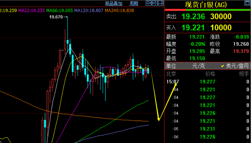 第二,白银方面:昨日盘中整理,也未给到小时线年均线18.85-18.9确认做多机会;