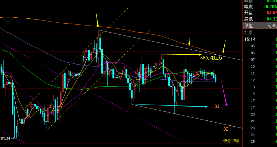 原油方面:同样也是震荡,只不过它的波动率依旧比较大,围绕86下阻力,83一线支撑,来回震荡横盘运行,4小时布林带缩口,等待后市的破位; 在未破位前,靠近86下就是做空,靠近83-82企稳做多;当前处于一定震荡偏区域上方,建议高空试探,上破86关键阻力点则失败调仓,短期阻力关注85一线,下方支撑目标看83-82;82上方企稳再计划短多试探,建议是高空为主;