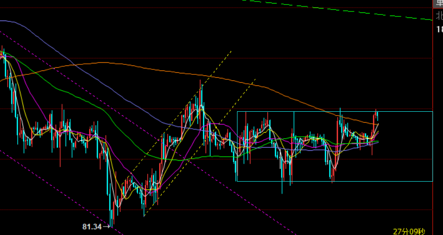 原油方面:这几日86阻力,83支撑,过山车来回走的相当有规律,到现在还无法打破此区间,那么只能继续留意86-83运行得失;当前不好参与,按照前两日时间规律,是欧盘大幅下挫,美盘V回去;而今日是欧盘上涨,那么美盘难道是倒V?,所以需要等形态,关注86阻力得失情况来安排;如突破86有效,上方关注87-88;
