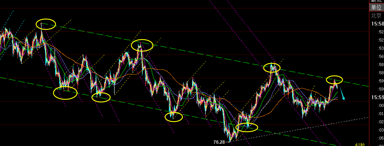 第三,黄金小时线级别:早盘一根大阳拉升,但依旧承压短期下降通道上轨阻力1667,并未破位,随后出现连阴失守大阳起涨点,这种形态出现大概率就是会续跌,而续跌成功说明大阳是一种诱多假象;当下关注年均线1650一线,前期一个起涨点是1649,一旦守不住,今日会持续走低,下方就能指向另一个通道下轨1630下;