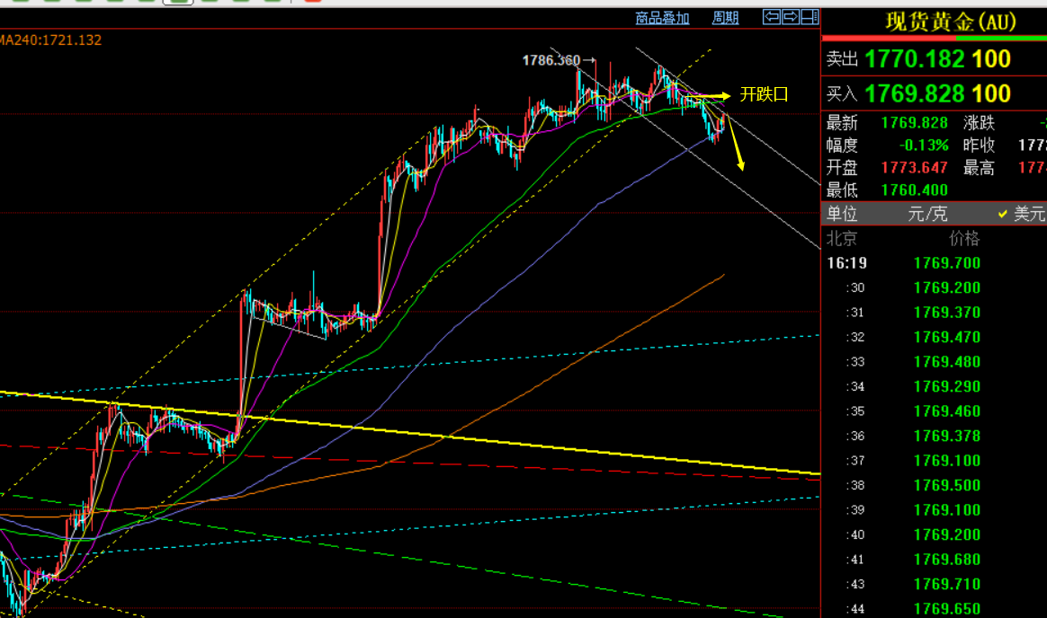 第一,黄金方面:昨日整体还是依托日线5均线再次高位整理,“搓揉”组合形态虽不明显,但具备一定变盘信号,4小时macd波峰值强调已是一定极限,它才是关键点,昨晚短期上行通道下轨支撑已失守且反抽确认过破位有效,最终今日早盘迎来一波下探跌至1760一线,手中空单则扩大利润,想拿多拿少的问题;