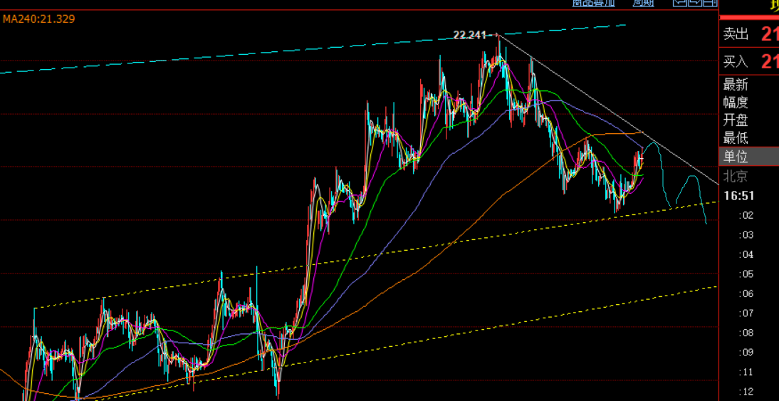 第二,白银方面:同样,日内短期压制看21.1,点位上也一直未触及;