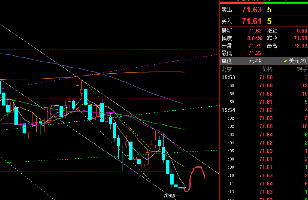 原油方面:周线大阴,有效失守分割支撑77一线,转为本周压力,也是5均线承压处,反抽过不了77,仍存在周线进一步的下调,若再往下打压,就是月线年均线68一线了;从日线级别,当前六连阴格局,这个算是今年以来连阴数最大的一次,以往一般出现三连阴最多四连阴,都会出现阳K线的修正或拐点反转;因此,六连阴形态下,虽短期仍很弱,但逐步逼近月线支撑,谨防提前出现日线级别的反弹修正,加之,上周五收报一根长下影底部十字K,70一线存在一定支撑企稳信号,今日若无法击穿它,就基本要展开一轮上行反弹,去回踩修正周线77下压力或日线10均线压力; 另外,从短周期小时线级别macd看,都知道都背离了不知道多少次,但价格迟迟未得到修复,也是在憋大招,等待出一个短期变盘拐点;当前短期阻力73.3-73,支撑70-70.5,倾向于探底拉升;而拐点要成立,得必须突破75.4双顶承压处;最后注意一点: 若它还是循环上周走法:白盘横盘,美盘前后上拉,半夜打压破底,出现这样情况,有可能还会刺破70,试探下69.4处,逼近月线支撑然后超跌反弹报复性上拉;
