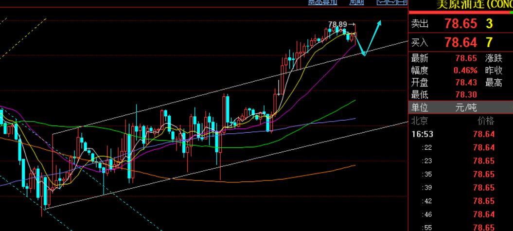 原油方面:昨日欧盘迎来一波持续大幅上涨,突破短期通道上轨77.4一线,日线中轨也被站上,则短期结束前几天的弱势压制,转多上行;今日回踩关注78一线,而77.5是作为风水岭,若破位此处,那么重新打回通道内,届时多空又会展开争夺;反之,77.5不破,则倾向于78上看涨延续反弹,阻力80一线;
