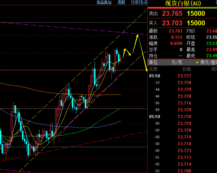 白银方面:日线同样处于上涨通道,中轨同样是关键支撑防守,目前上移22.8,而当前价格是23.7,显然走势比黄金强很多,周四也并未大阴,因此安心持多看涨即可,短期内目标25不变,预计再冲一两次上去,也就到位了,然后到时再根据盘面来解读下一个阶段的行情;