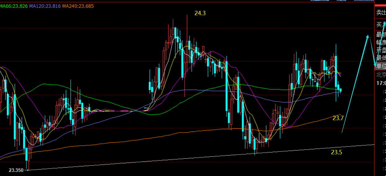 第二,白银方面:昨日依托23.6支撑,也震荡拉至24一线,维持日线震荡多头格局;