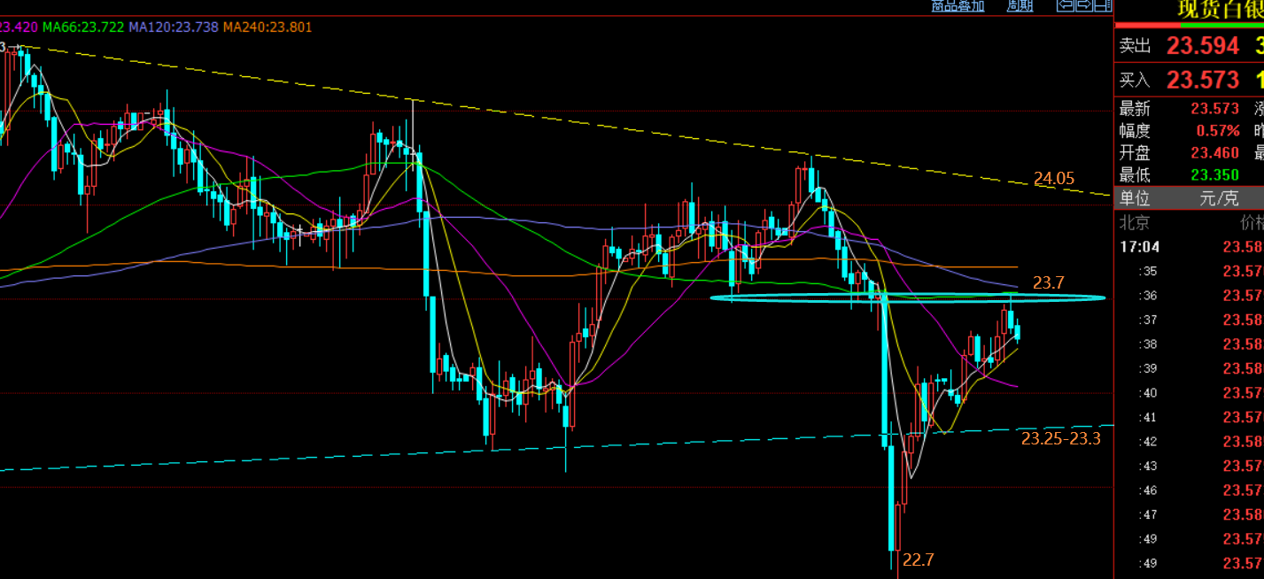第二,白银方面:昨日24.15提示阻力继续看压制跌,大幅下挫至22.7低位,这一波吃的不错;