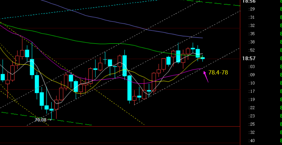 原油方面:昨日算是不错的一波回测,符合预期,周一判断82.65双顶压制也就暂时成功,真正要完成拐点变盘,则需有效破位日线中轨或通道下轨78.4一线,靠近78是一个重要节点支撑; 今日来看,早盘提示80.7下阻力还有效,它是凌晨压制高点,支撑79.5是小时线通道支撑,由于背离的存在,价格也暂时未干脆打下去,晚间关注80.7-79.5上下得失情况;往上突破则转为震荡;往下破位则延续下跌,建议短线看跌为主,82.65下相对高位的可以尝试波段持仓;