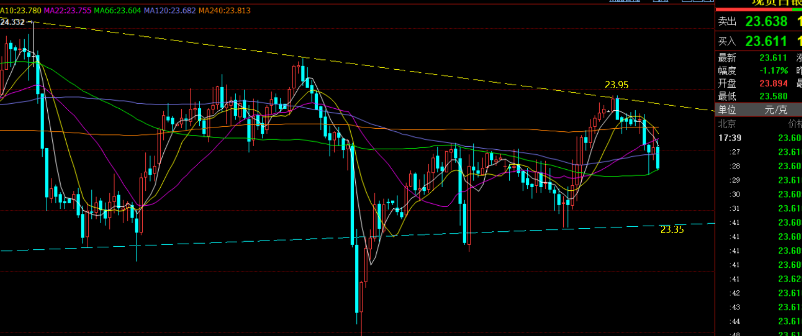第二,白银方面:昨日回踩也到位了短线目标23.3一线;