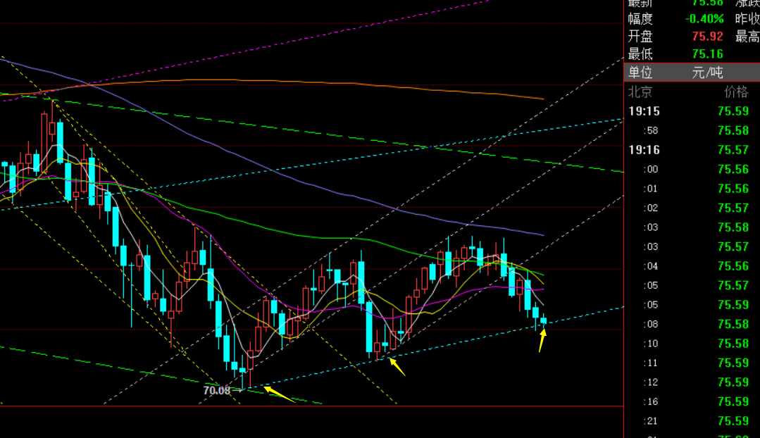 原油方面:昨日依托图中趋势支撑点75.4有所成功反弹,今日仍继续关注此位置得失,若能探底拉升坚守,则下周会有一轮反攻;反之,大阴失守,下周继续弱势打压下行;不管是哪种,当前局面仍是维持宽幅整理,区间70-83;